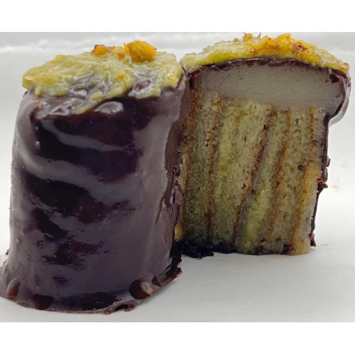 | Ingredientes (continuación) | Pistacho en grano. Cobertura con sabor a chocolate negro: [(Grasas vegetales (coco, palmiste), azúcar, pasta de cacao, cacao en polvo, emulgentes (lecitina de soja), aromas).] |